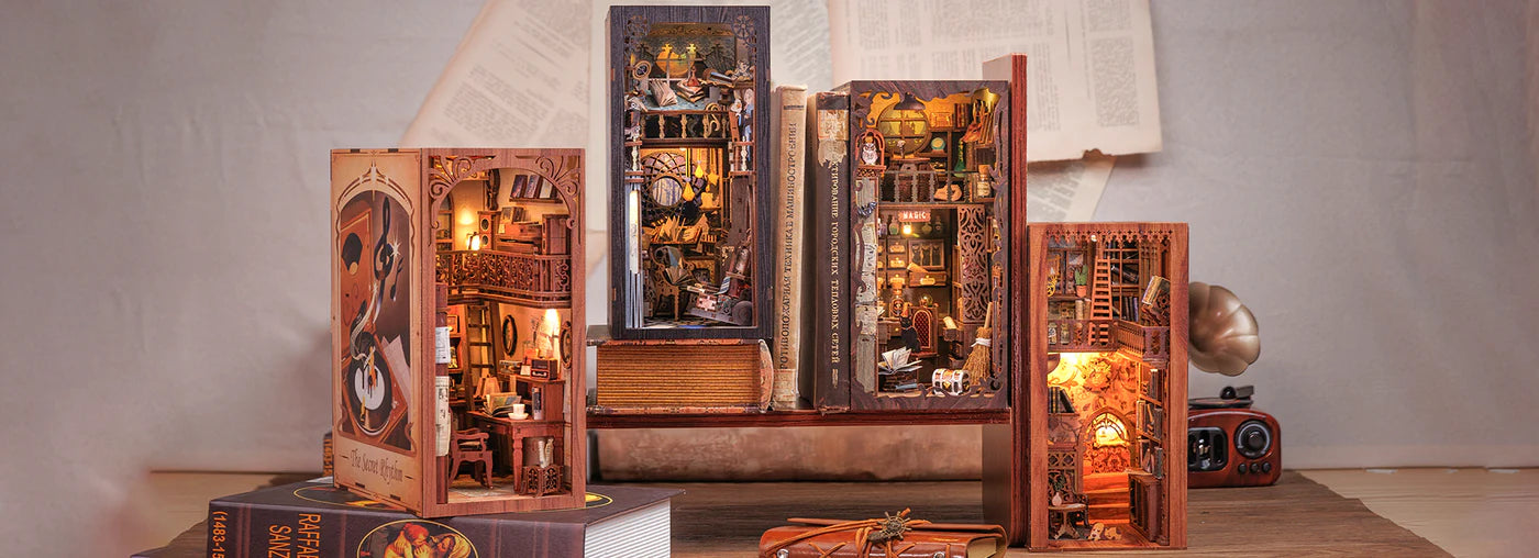 • BV02-009 DIY Book Nook Kit Royal Seamer Miniature Bookshelf Insert Diorama Scenery Crafts